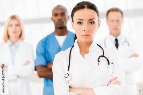 Fototapeta premium Confident doctor leading her team.