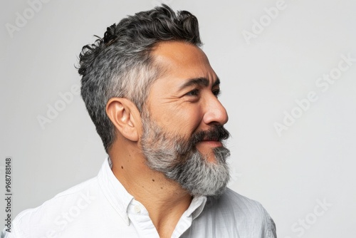 © Anjali, Obraz premium Confident Hispanic man with beard in relaxed pose.