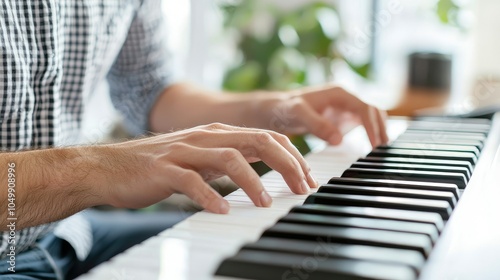 Obraz premium Confident Italian Musician Composing at Piano