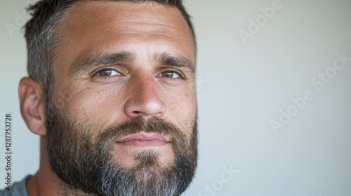 Obraz premium Confident man portrait, neutral background, serious expression, profile...
