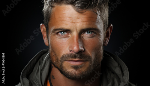 Fototapeta premium Confident man with beard, serious expression, looking at camera generated by AI
