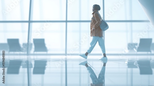 © Kharkovich, Fototapeta premium Confident mature caucasian female walking in modern airport terminal