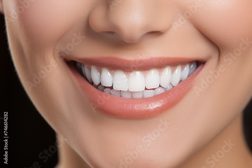 © Emvats, Fototapeta premium Confident person smiling with bright white dental veneers for perfect oral health