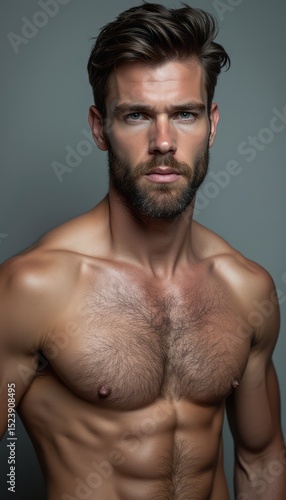 © natakot, Fototapeta premium Confident shirtless man with striking features