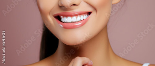 Obraz premium Confident Smile: Close-Up of Woman's Mouth, Perfect White Teeth and Radiant Smile