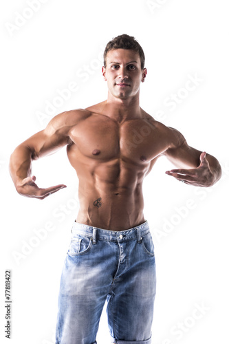 © theartofphoto, Fototapeta premium Confident Topless Muscled Man Looking at Camera
