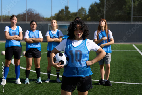 © alvaro, Obraz premium Confident women soccer players standing on football field