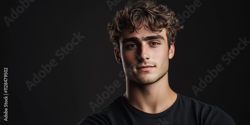 © Rasim, Naklejka premium Confident young man posing for the camera in a studio setting, showcasing his self assurance and charisma. This studio shot captures the essence of a confident young man.