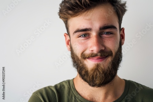 © darshika, Obraz premium Confident young man with beard smiling at camera