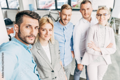 Fototapeta premium confident young start up team smiling at camera in office