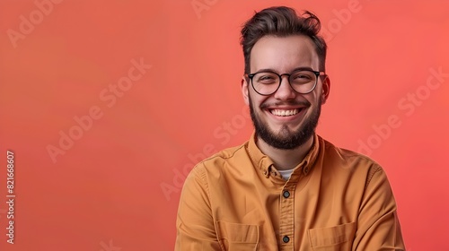 © Thipphaphone, Fototapeta premium Confident Young Tech Professional Smiling in Minimalist Workspace