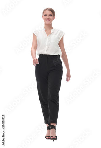 Fototapeta premium confident young woman leader stepping forward. isolated on white