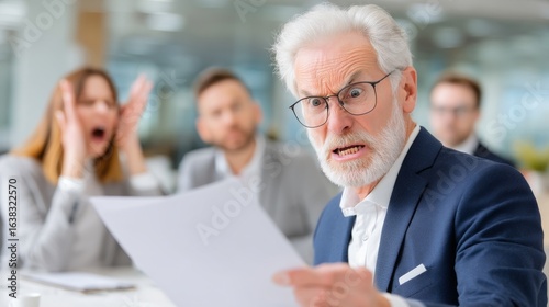 © TS Armin, Fototapeta premium Conflict resolution meeting turns heated among business leaders office space image professional setting tense mood