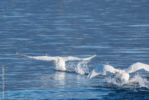 © Pyc Assaut, Naklejka premium Conflit Territorial Entre Deux Cygnes Tuberculés sur l'Eau