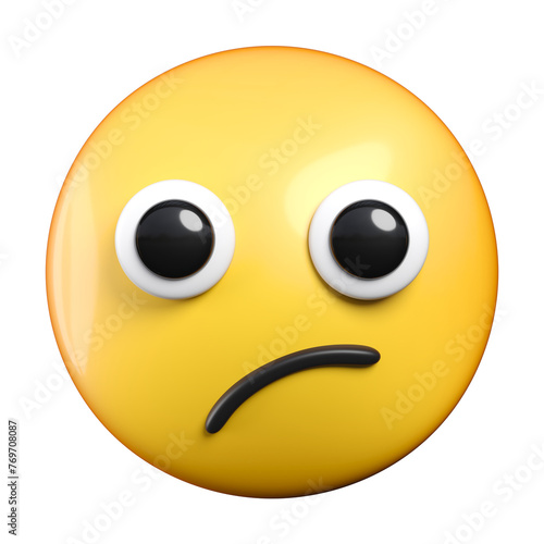 Fototapeta premium Confused Face emoji, face with open eyes and a skewed frown emoticon 3d rendering