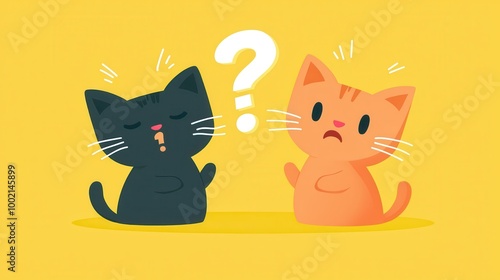 © Sakiyah, Obraz premium Confused Kittens with Question Marks on Yellow Background