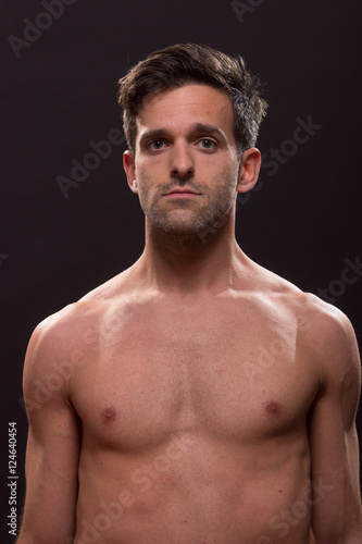 © HD92, Fototapeta premium confused young man shirtless nude chest head face