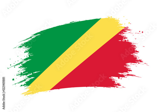 © lemugraphics, Obraz premium Congo flag png. Isolated grunge brush stroke flag of Congo illustration transparent png