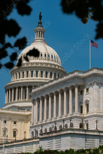 Fototapeta premium Congress in Washington, DC. Congress is the symbol of American democracy. Congress in Washington, DC. The Capitol dome rising over Capitol Hill. Washington DC skyline near Congress.