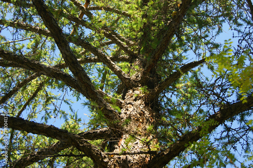 © santa43, Obraz premium Conifer larch type from below year daytime