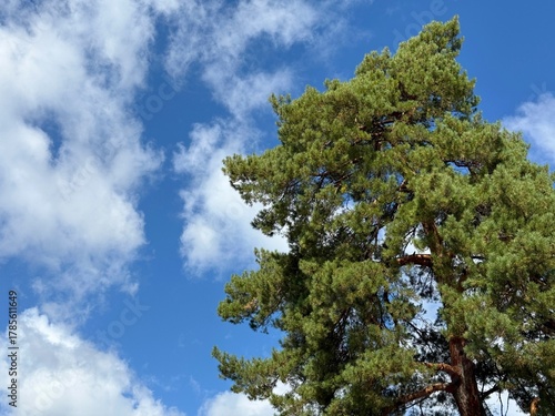 © OLENA LIALINA, Obraz premium Conifer pine tree and sky.