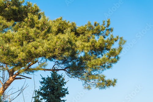 © Voyagerix, Obraz premium Conifer tree on clear blue sky background