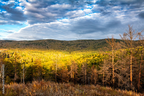 Fototapeta premium Coniferous forest in the Siberian taiga in autumn