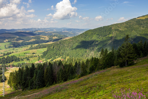 © Pellinni, Naklejka premium coniferous forest on a mountain slope