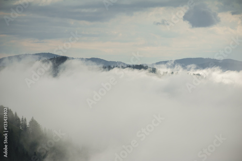 © alipko, Obraz premium coniferous forests in the mountains in the fog