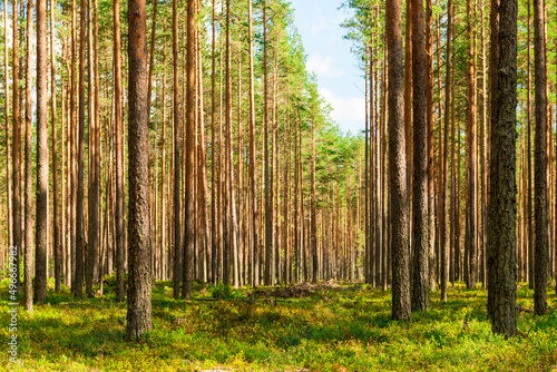 © kosmos111, Fototapeta premium Coniferous green pine forest landscape in summer, Karelia, Russia