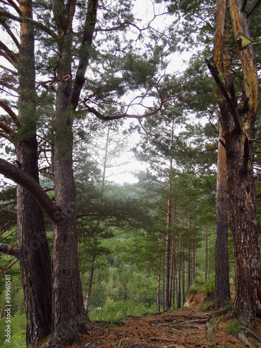 © ka8terina, Fototapeta premium Coniferous trees on the brink of break of the mountain