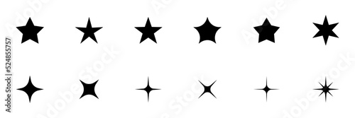 © Frank, Fototapeta premium Conjunto de iconos de estrellas y luces negras. Luminarias nocturnas. Estrellas de diferentes