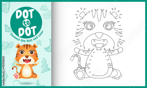 Fototapeta premium Connect the dots kids game and coloring page with a cute tiger character illustration