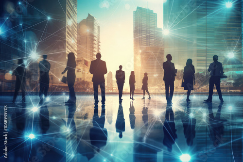 © evening_tao, Obraz premium Connected Future: Business Leaders in Urban Landscape