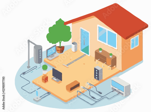 © VectorVibe, Obraz premium Connected Home Automation Network Illustration