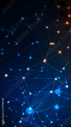 © jiejie, Obraz premium Connected lines and dots on dark blue background