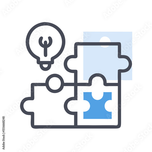 © Zahadur, Obraz premium Connected Puzzle Pieces with Light Bulb: Solution and Innovation Stock Image
