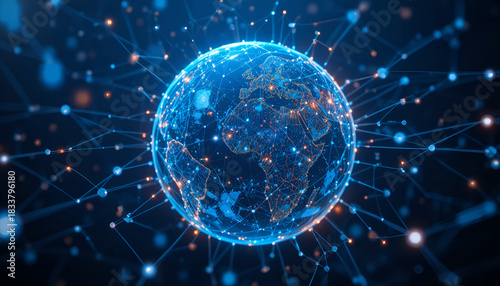 © Mr. Shoaib Arshad , Obraz premium Connected world globe with digital network for global business technology, modern communications infrastructure, and international data connections concept