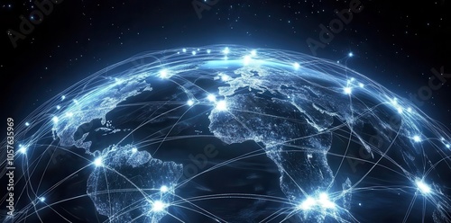 Obraz premium Connected World Map with Glowing Network Links, representing global...