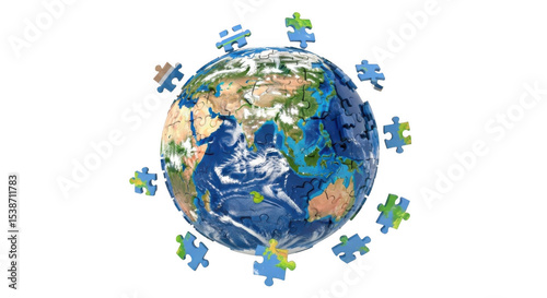 © Demas, Naklejka premium Connecting The Globe Illustrated by PNG Puzzle Pieces Background and Texture