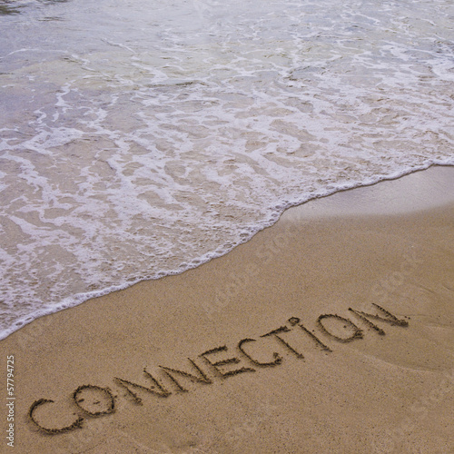 © stanciuc, Fototapeta premium Connection word written on sand, with waves in background