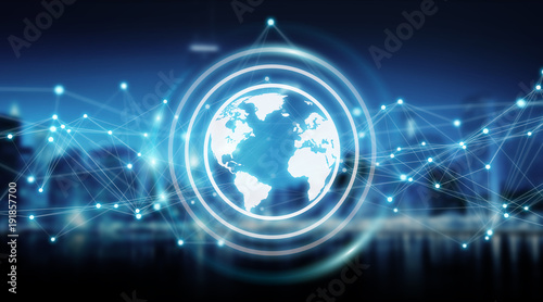 © sdecoret, Obraz premium Connections system on world icon 3D rendering