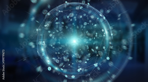 Obraz premium Connections system sphere and datas exchanges 3D rendering