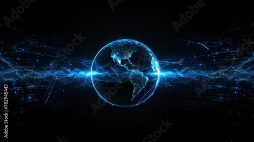 Obraz premium Connectivity, environmental protection, communication, networking, visualization, iot, blockchain, Earth