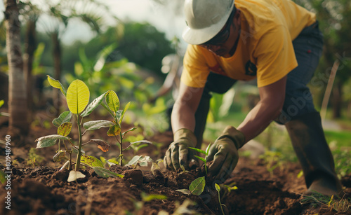 Fototapeta premium Conservation efforts such as tree planting or habitat restoration in a...