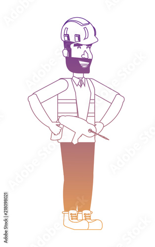 Obraz premium constrcution man holding a drill over white background, vector illustration
