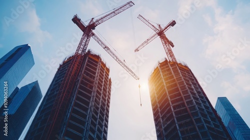 © Sarut, Fototapeta premium Constructing a building city center construction site overview