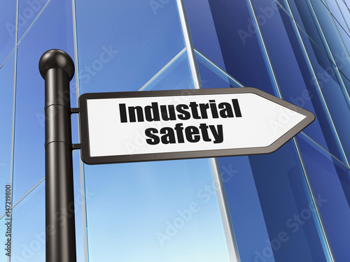 Fototapeta premium Constructing concept: sign Industrial Safety on Building background