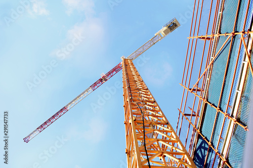 Fototapeta premium Construction - A large crane reaches for the sky
