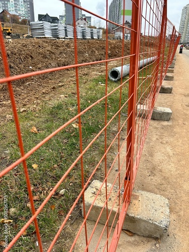 © TATSIANA, Fototapeta premium construction, building materials stacked behind the fence